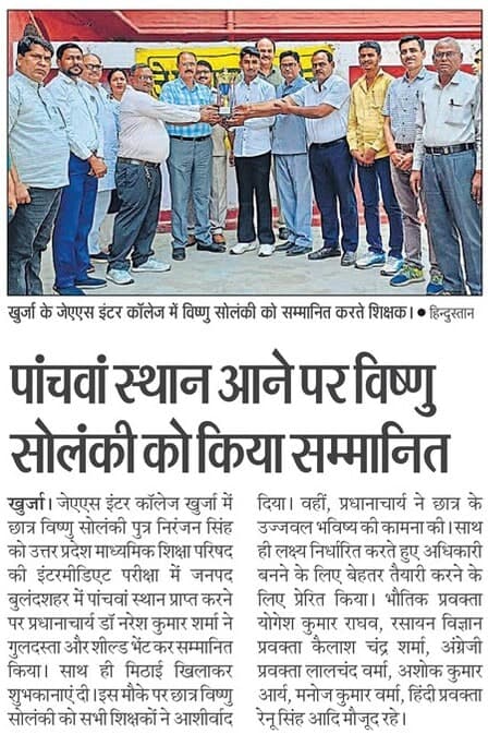 जे. ए. एस. इण्टर कॉलेज, खुर्जा जनपद बुलंदशहर का पूरा नाम जानकी प्रसाद एंग्लो संस्कृत इंटर कॉलेज खुर्जा है। इस कॉलेज की स्थापना का श्रेय खुर्जा के प्रसिद्ध बैंकर स्वर्गीय श्री राय बहादुर सेठ जानकी प्रसाद जी की दानवीरता तथा जनसेवा की भावना को है इस विद्या मंदिर की स्थापना 16 जनवरी 1916 को 3 अध्यापकों एवं 27 विद्यार्थियों से की गई तथा वर्ष 1917 में हाईस्कूल की मान्यता प्राप्त हुई वर्ष 1919 में अंग्रेजी, गणित ,उर्दू , इतिहास , भूगोल, परिसियन , संस्कृत ,विज्ञान कला, नागरिक शास्त्र , ग्रंथ शिल्प में मान्यता मिली वर्ष 1948 में काष्ठ कला ,अर्थशास्त्र वाणिज्य, जीव विज्ञान एवं संगीत की मान्यता प्राप्त हुई । वर्ष 1953 में इस कॉलेज का स्वरूप इंटरमीडिएट कॉलेज के रूप में हो गया